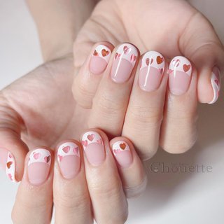 シアーホワイトのハートホロネイル ハート ネイル ピンク バレンタイン ネイル ハート ハートネイル